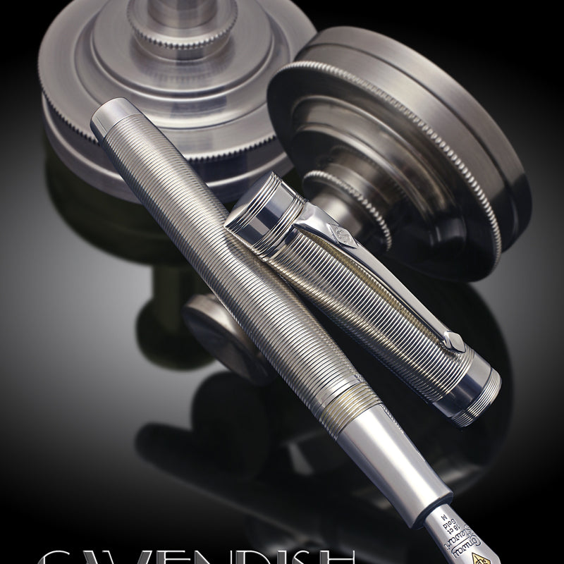 当社のペンメーカーは、純スターリングシルバーのロッドから始めて、キャベンディッシュをクラシックなフラットトップのキャップとバレルに成形します。それぞれのペンには、ペンの全長に渡って高浮き彫りの同心円状のリングが彫刻されています。明るく磨かれたキャップトップ、キャップバンド、バレルエンドが引き立ち、パターンはエレガントでクリーンです。