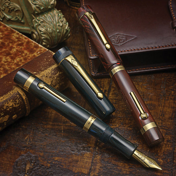 キャップトップの彫刻のアクセント、18カラットの純金またはスターリングシルバーで作られた幅広のバレルバンド、そして伝統的なレバーフィルシステム、スポイトフィル、またはカートリッジコンバーターの選択を備えたマールボロヴィンテージは、まるで本物の世界から抜け出したかのように見えます。 1920年代。