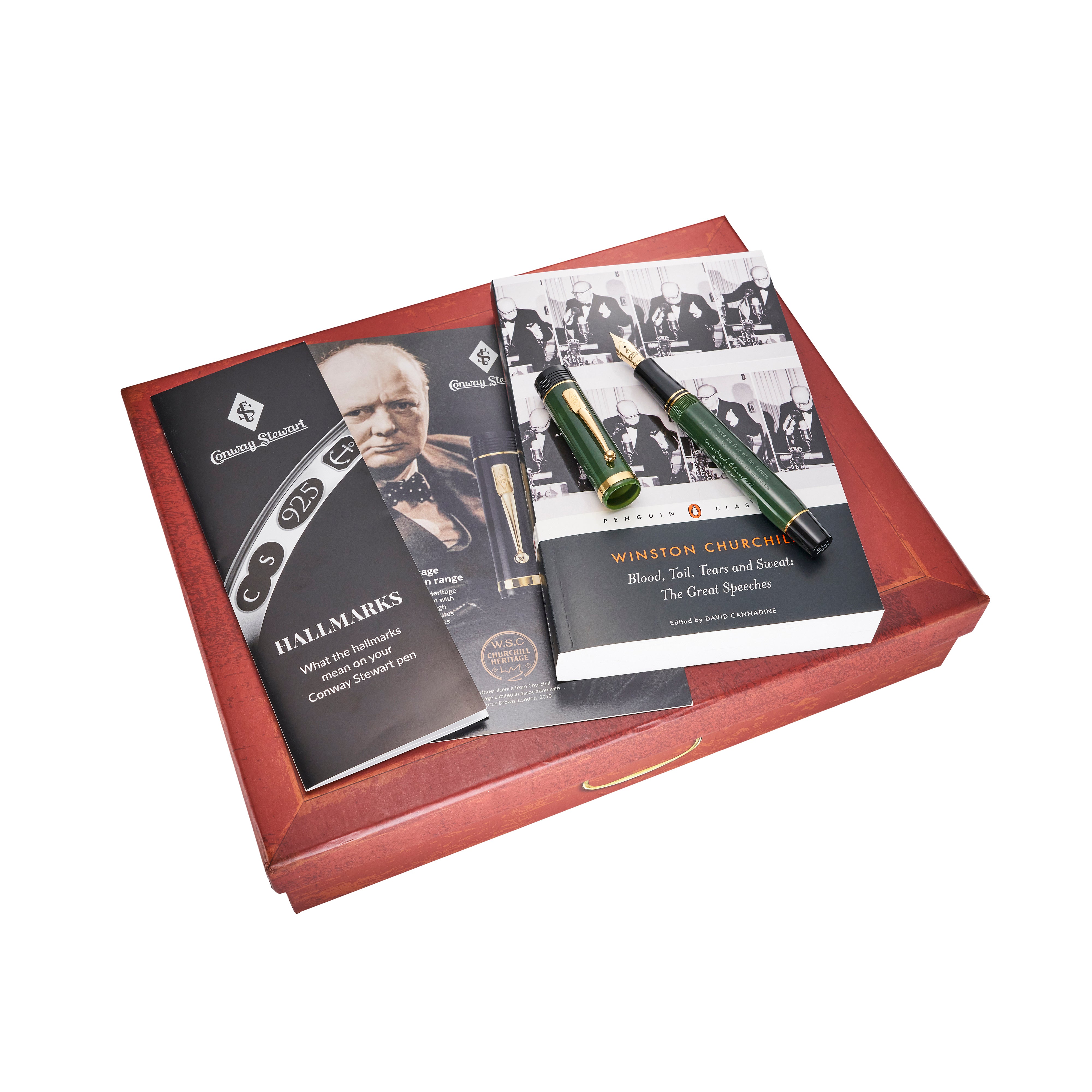 A book called “Winston Churchill; Blood, Toil, Tears and Sweat: The Great Speeches” is supplied with each pen. This magnificent anthology includes 33 of Churchill's most famous speeches from his maiden speech in the House of Commons in 1901 to his swan song of 1955, via his towering rhetoric of the Second World War. As the Sunday Telegraph summed up when reviewing this book , "Churchill was a word spinner of genius....a splendid anthology".
