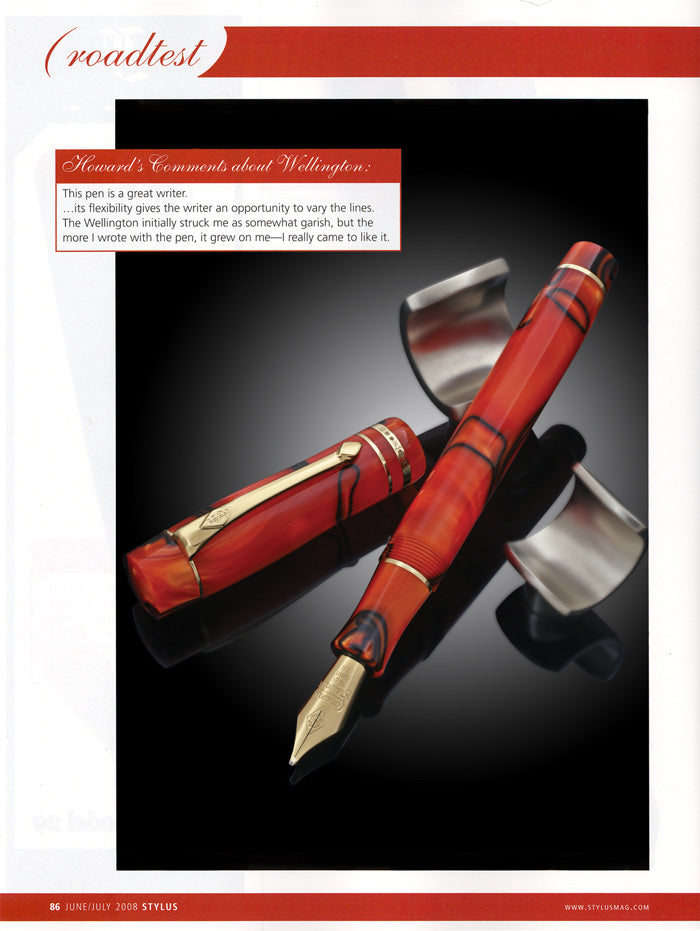 Conway Stewart es muy conocido. para una amplia gama de tamaños de puntas. Nuestro bolígrafo de prueba tenía una punta de tamaño mediano, pero su flexibilidad nos dio la oportunidad de variar las líneas. Aunque no hay nada nuevo en la ingeniería asociada con este bolígrafo, tiene un rendimiento bueno y constante. El bolígrafo tiene un coste de venta al público de 490 dólares, lo que parece un poco elevado teniendo en cuenta el tamaño del bolígrafo. Pero teniendo en cuenta el ajuste y el acabado general de alta calidad, esto sigue siendo razonable. El Wellington también está disponible en negro azabache, marrón y verde. Se presenta en un envoltorio muy atractivo que hará que un bolígrafo que ya es bonito se convierta en un regalo impresionante.