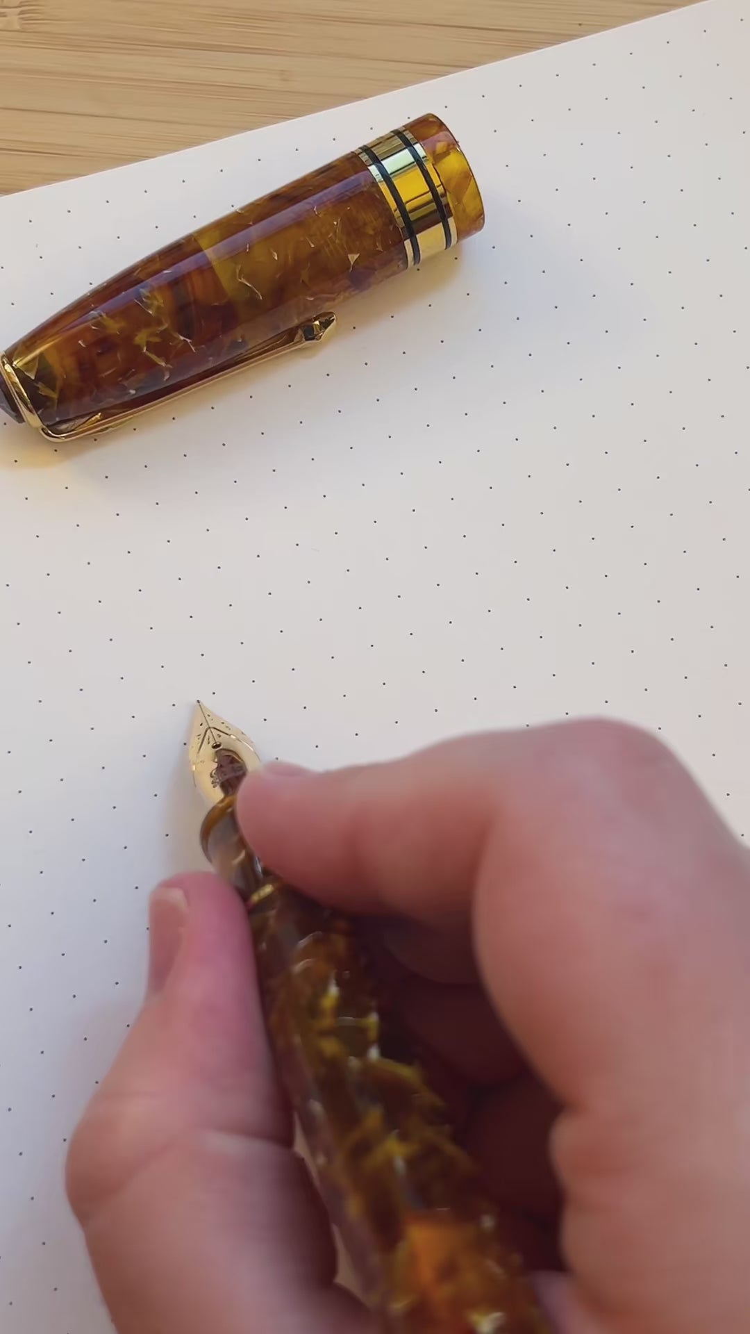 La Conway Stewart Serie 58 tiene el plumín n.° 5; es un plumín ligeramente más pequeño que el de la gama Churchill/Winston, pero aun así es un placer usarlo. El plumín n.° 5 está disponible en acabado monocromático dorado en extrafino, fino, medio y ancho. El fino es de oro de 18 quilates, mientras que los demás anchos solo están disponibles en oro de 14 quilates.
