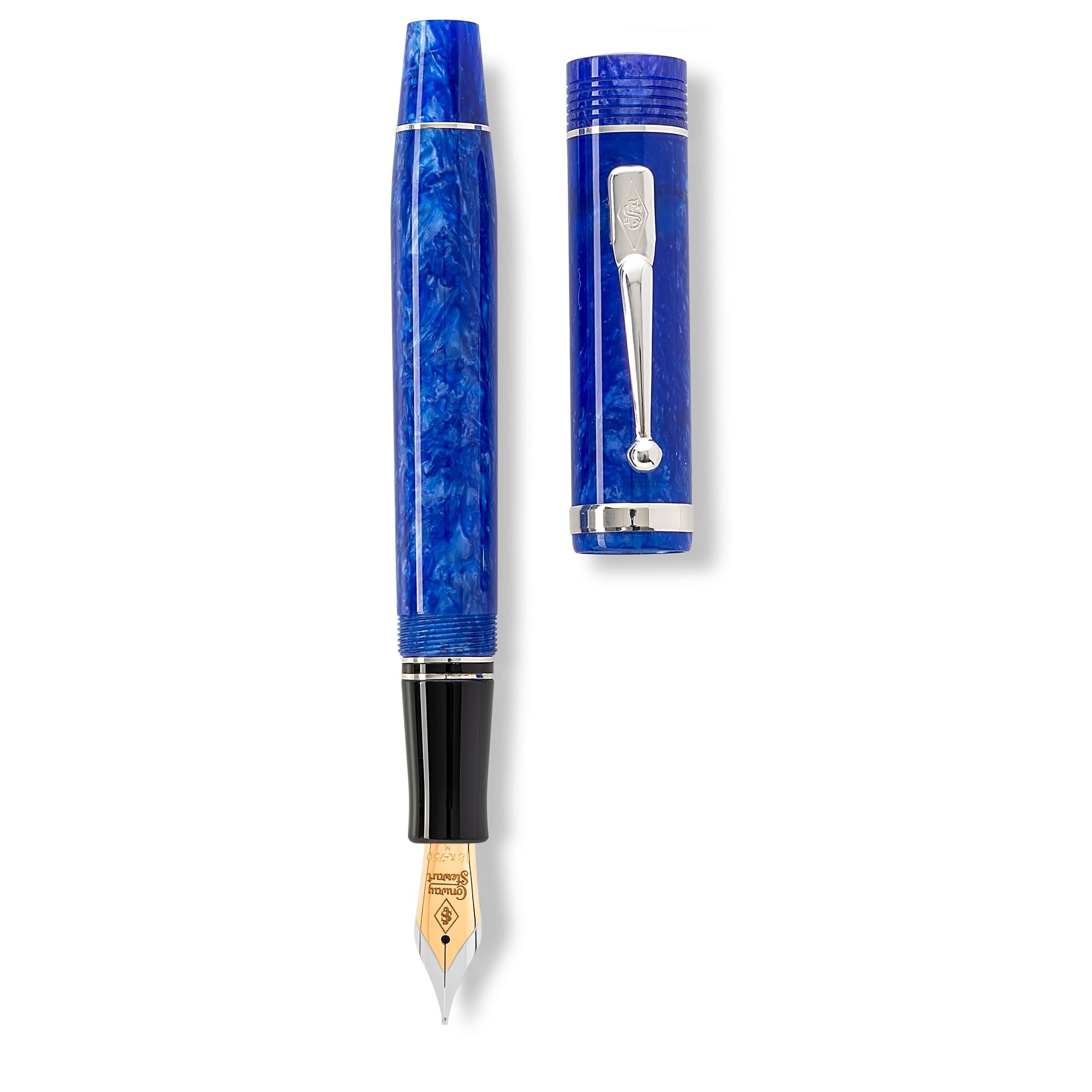 कॉनवे स्टीवर्ट चर्चिल नीलम नीला एक आश्चर्यजनक फाउंटेन पेन है जो एक प्रभावशाली डिजाइन और गुणवत्ता का दावा करता है। महान ब्रिटिश राजनेता से प्रेरित, इस बड़े और वजनदार पेन की दुनिया भर में पहचान है। गहरे नीलम नीले रंग और स्टर्लिंग चांदी की फिटिंग के साथ, यह पेन किसी भी समुद्री या नाविक साहसी के लिए एकदम सही है। वाइड कैप रिंग पर अंग्रेजी हॉलमार्क की मुहर भी लगी है, जो इसकी गुणवत्ता और विरासत का प्रमाण है। इनमें से केवल 16 असाधारण पेन उपलब्ध हैं, इसलिए अपना एक लेने का मौका न चूकें।