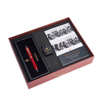This pen has a dual filling system. It is fitted with a converter (reservoir) which allows the user to draw ink from a bottle or alternatively, you may remove the converter and use standard European ink cartridges. All our fountain pens come with 2 complimentary cartridges so you can start to use it immediately. If you prefer to use bottled ink, we recommend our own range of high quality ink, made in England and available in a range of colours.