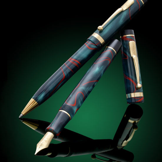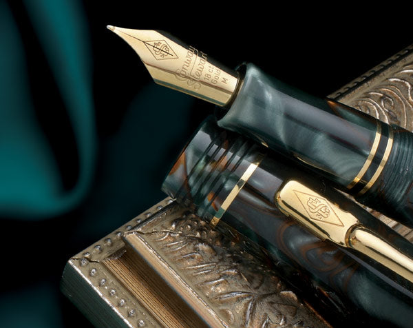 Conway Stewart 2013 年 Montague and Capulet 系列致敬莎士比亚永恒经典《罗密欧与朱丽叶》中的主要人物,将优雅纤薄的设计带入手中。 这些笔以原始的纯银巴贝奇模型为基础,笔帽、笔杆和握持部分采用手工铸造的丙烯酸树脂结构。 Capulet 有五种全新的充满活力的饰面可供选择:红衣主教红、铜青铜色、常青色、薰衣草色和海绿,而 Montague 则采用闪闪发光的经典黑色制成,饰有优雅的扭索状雕刻风格。 这些钢笔继续将 Conway Stewart 系列的日常实用性提升到一个新的水平,其纤细的线条和完美平衡的轻盈重量,非常适合当今忙碌的生活方式。 Montague 和 Capulet 非常适合用于日常计划表或公文包,是每位高管和高级书写工具爱好者的完美配件。 在保持手感舒适的同时,这个新系列的设计兼具功能性和优雅性。钢笔版本配备了我们的 18 克拉大号纯金笔尖,有八种笔尖等级可供选择,从超细到超宽、细斜体、中斜体、宽斜体,并采用可靠、易于使用的墨盒转换器系统。 Montague 和 Capulet II 还提供滚珠笔形式,适合那些既喜欢易用性又不想放弃液体墨水在纸张上优雅流动的用户。 Montague...