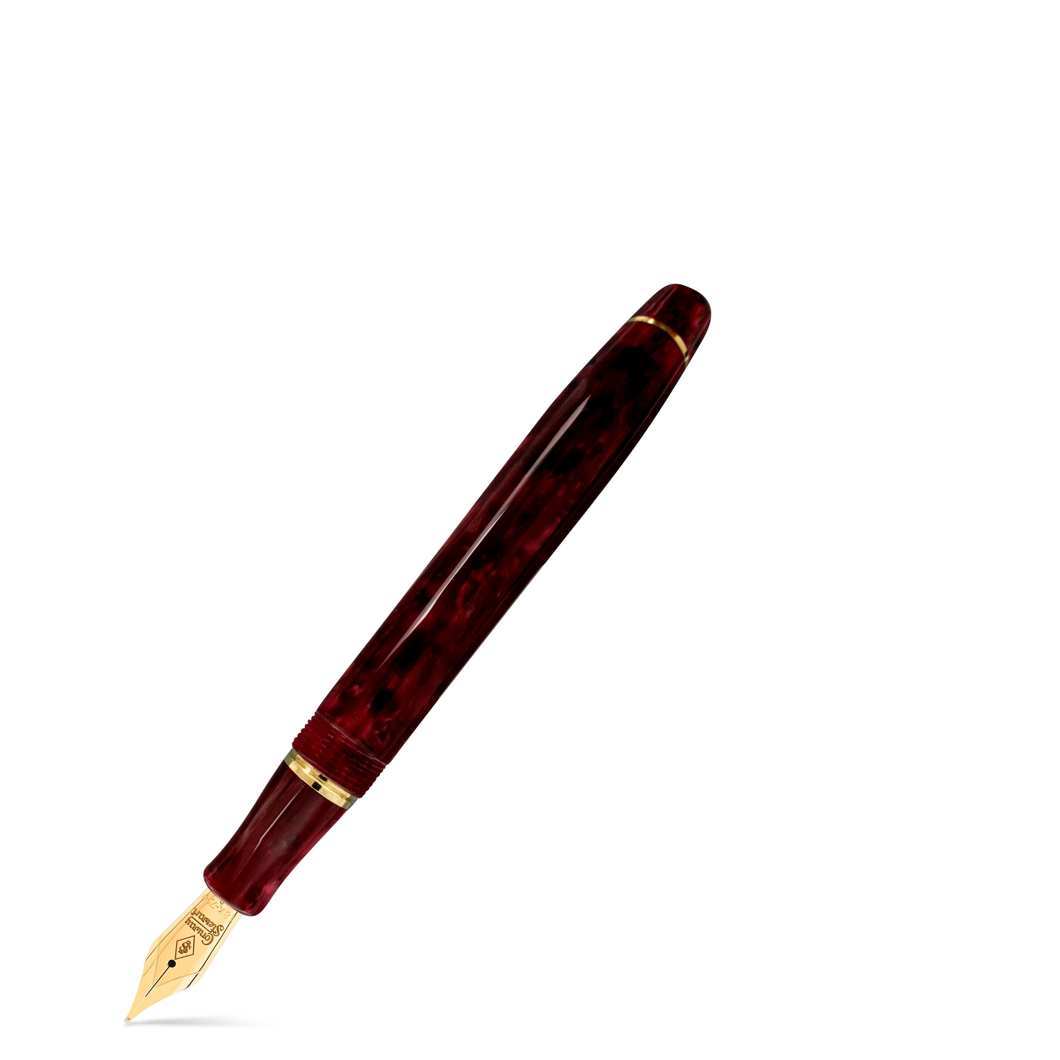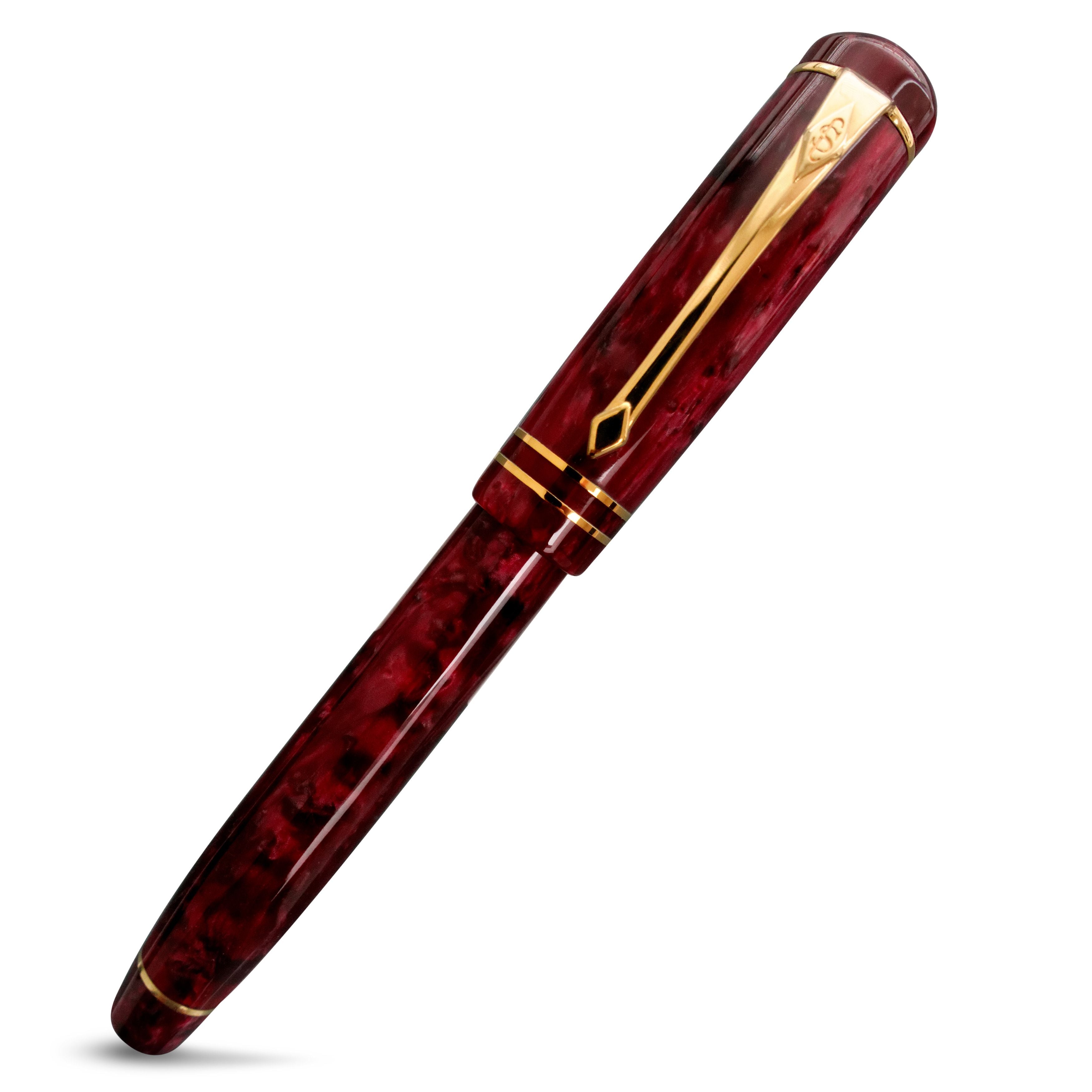 隆重推出 Conway Stewart Wordsworth 勃艮第腮红钢笔 - 一款经典风格的钢笔,具有优雅的圆形特征,让人联想到流行的温斯顿。中号钢笔采用锥形笔杆,笔帽和笔杆上有纯金镶边,散发出温暖和奢华的气息。由复杂的亚克力材料制成,呈深紫红色,没有两支笔是一样的,这使得它和它的主人一样独一无二。最初限量发行 50 支,现仅剩 12 支。可作为钢笔使用,可选择细、中或宽 2 色 18ct 金色旗形笔尖,并装在可兼作桌架的黑色皮盒中。