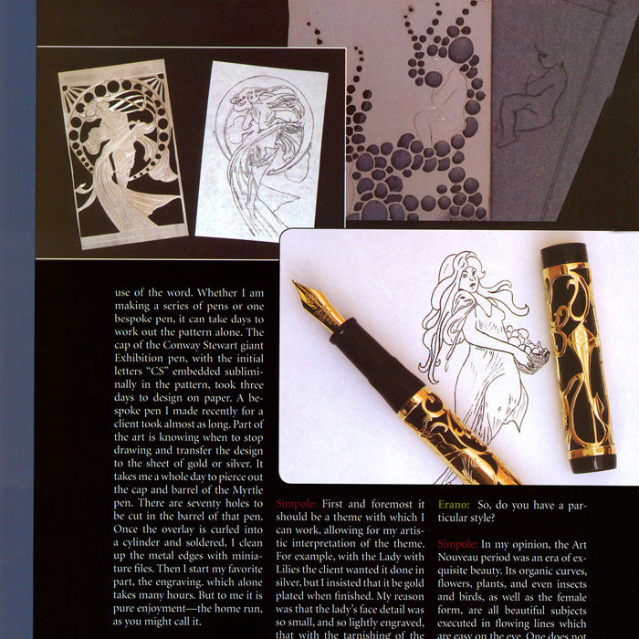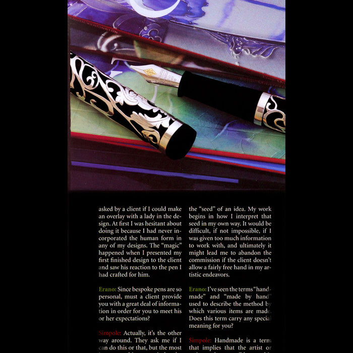 Simpole 是一位备受推崇的钢笔修复师和钢笔制造商,他最著名的作品可能是他最近与 Conway Stewart 合作生产的 Centenary 钢笔和超大展览钢笔。 Simpole 可能鲜为人知的是,他还在非常有限的基础上制造定制或定制钢笔。 “Bespoke”是一个英文术语,通常用于描述定制服装。 Simpole 将这一背景应用于制笔,为他的客户打造高度个性化的钢笔,据传其中一位客户是英国贵族的某位成员。