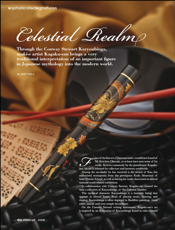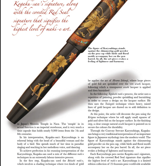 Kogaku-san 与康威·斯图尔特 (Conway Stewart) 合作创作了 Karyoubinga(即“天女”)的莳绘系列。