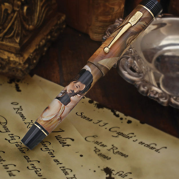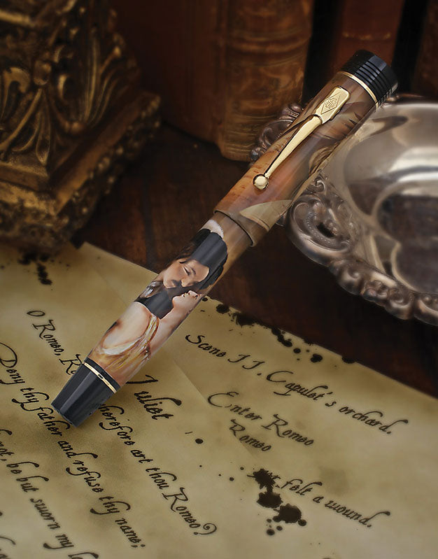 Conway Stewart Shakespeare Limited Edition 采用喷枪和手绘艺术创作,唤起他最早的戏剧胜利之一的场景,被认为是经典但悲惨的爱情故事。